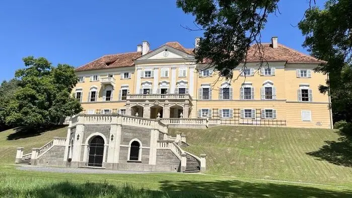 Landesimmobilien-Chef Martin Pölzl führt durch das knapp 50.000 Quadratmeter große Anwesen in Halbenrain. Über die Schloss-Geschichte, den Erhalt und die Preisvorstellung.