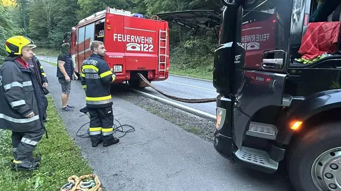 Die Feuerwehr Bad Gleichenberg versuchte den Lkw abzuschleppen