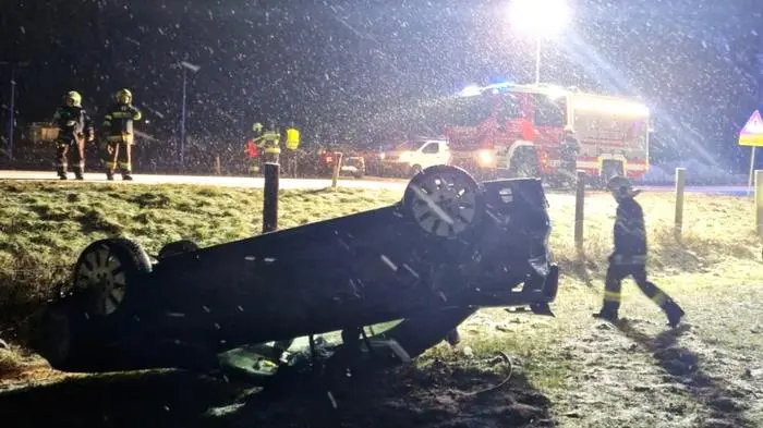 Leichter Schneefall, etwa null Grad Celsius und eine tiefschwarze Nacht – diese Verhältnisse herrschten als sich in der Nacht von Samstag auf Sonntag gegen 0.49 Uhr ein Unfall in Trautmannsdorf (Gemeinde Bad Gleichenberg) ereignete. Dabei kam ein Pkw-Lenker auf der Umfahrung Trautmannsdorf aus bisher unbekannten Gründen von der Fahrbahn ab. Der Pkw überschlug sich und kam im angrenzenden Feld am Dach liegend zum Stillstand.
