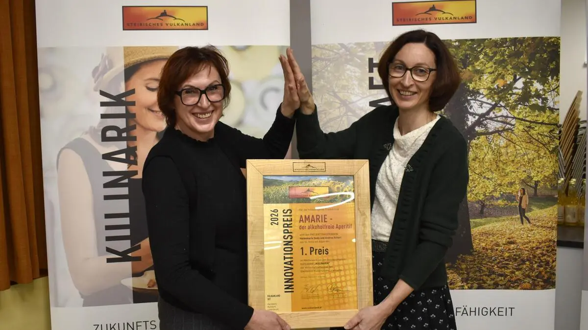 Das Steirische Vulkanland prämierte zum 22. Mal innovative Kulinarik. Die Schwestern Heidemarie Sudy und Andrea Scharl holten sich mit ihrem alkoholfreien Aperitif „Amarie“ den ersten Preis.