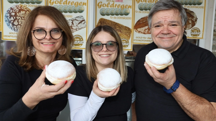 Monika, Alexandra und Kurt Kranich mit den beliebtesten Krapfen der Steiermark