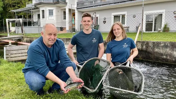 Die Schlein-Geschwister Philipp (26) und Melanie (23) aus Deutsch Goritz führen seit Kurzem eine der größten Fischzuchten in der Südoststeiermark. Nun erhielten sie eine Auszeichnung für ihre Räucherlachsforelle.
