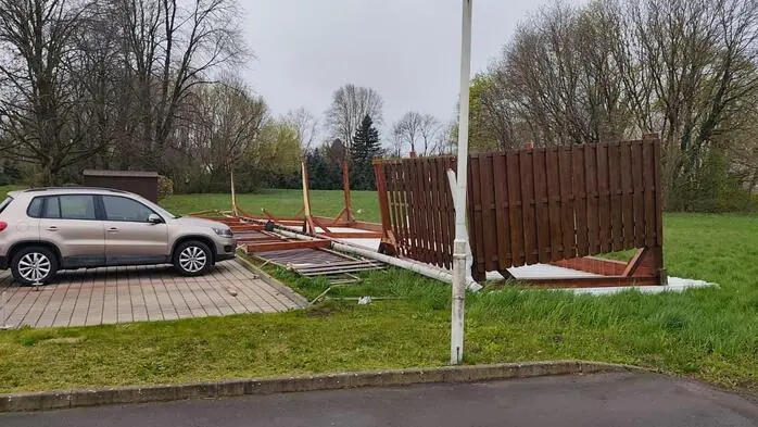 Sturmböe schleuderte Carport in Wiese, Bäume stürzten auf Straßen