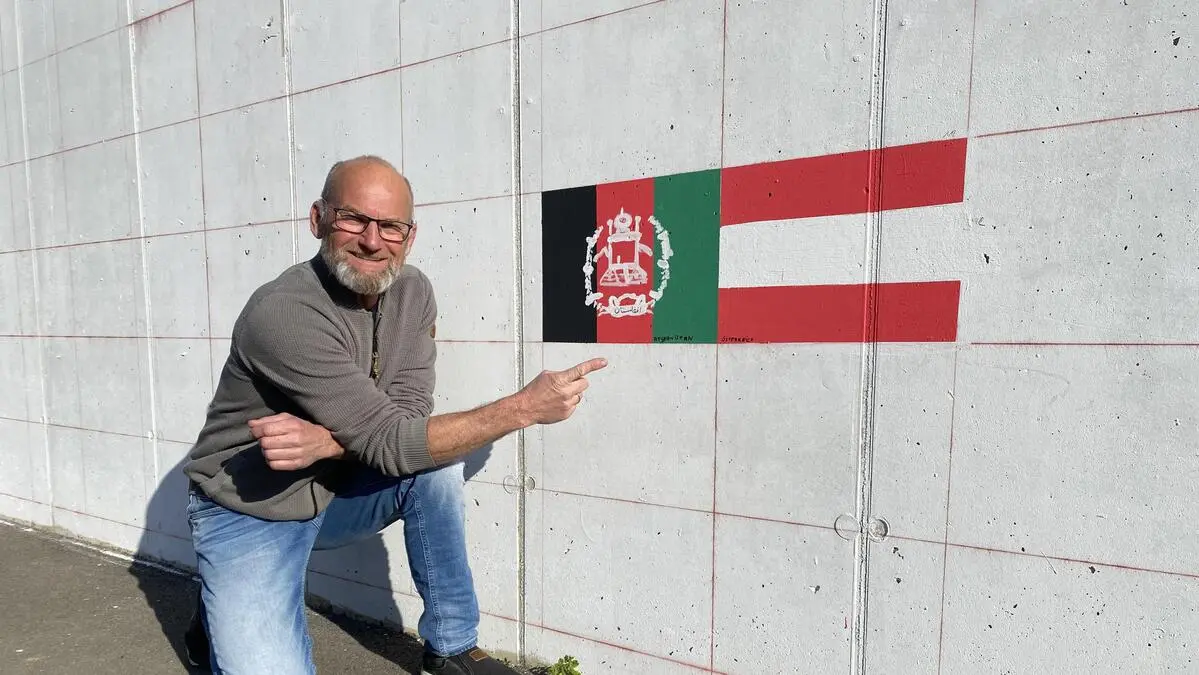 Die österreichische Flagge malte Roland Ritter selbst auf die Mauer