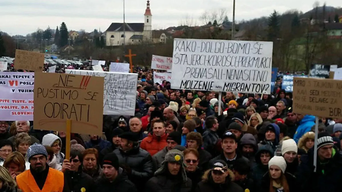 2000 bis 3000 slowenische Arbeitnehmer, die ihr Geld in Österreich verdienen, protestierten am Samstag am Grenzübergang Spielfeld/Sentilj. Die A 9 wurde kurzfristig gesperrt.