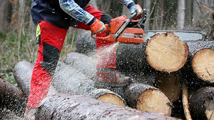 Beim sogenannten Ablängen von Baumstämmen wurde ein Arbeiter von einem Baum eingeklemmt. Er konnte sich nicht selbst befreien.