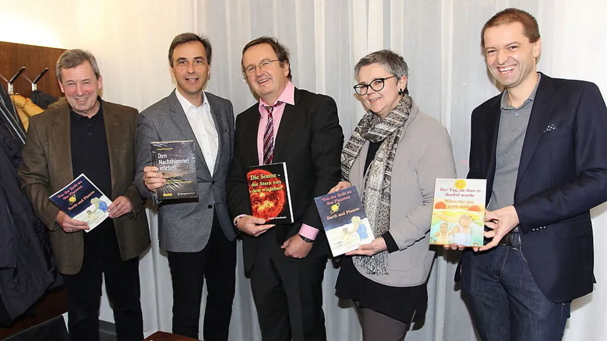 Der Grazer Bürgermeister Siegfried Nagl (2. v. li.) eröffnete die Buchpräsentation des bekannten Astrophysikers Arnold Hanslmeier (Mi.)