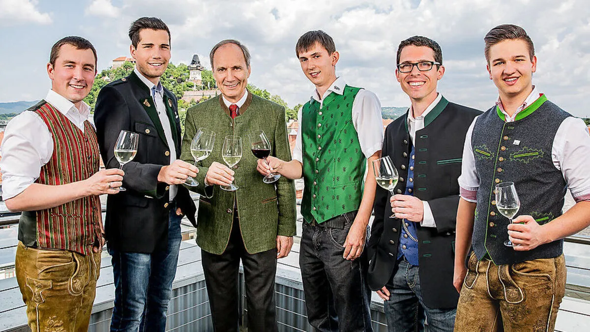 Sparkassen-Vorstand Franz Kerber mit den fünf Topwinzern von morgen