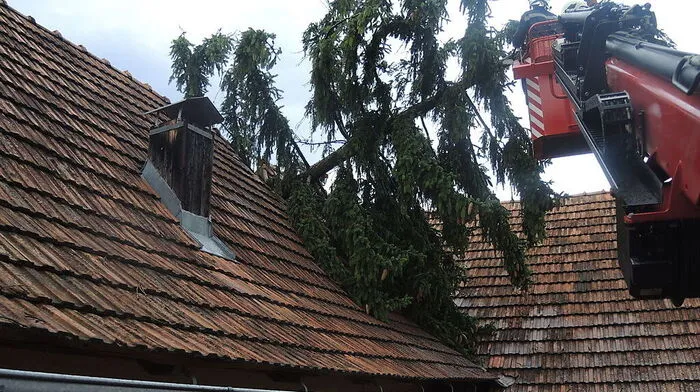 Dachstuhlbrand, umgestürzte Bäume und eine kleine Mure