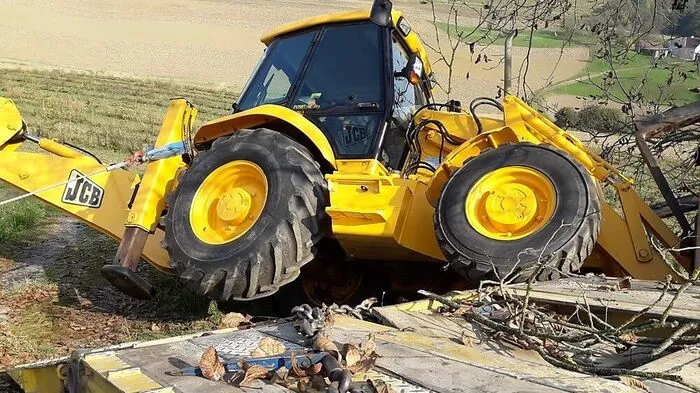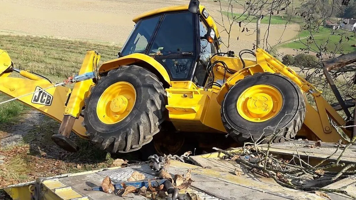 Von Tieflader gerutscht: Bagger drohte abzustürzen