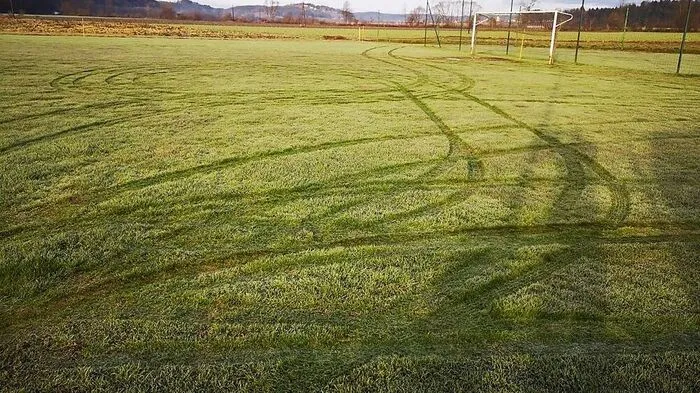 Einen Tag vor dem Heiligen Abend zog ein bislang Unbekannter mit einem schwarzen VW Golf auf dem frisch sanierten Sportplatz in Breitenfeld an der Rittschein seine Runden. Die Mitglieder des Sportvereins sind verärgert.