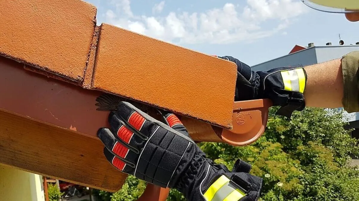 Unter Dachziegel hängen geblieben: Feuerwehr rettet Jungvogel
