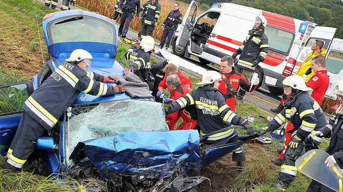 Autofahrer kam in Kirchbach von der Straße ab, wurde im Fahrzeug eingeklemmt und dabei schwer verletzt.