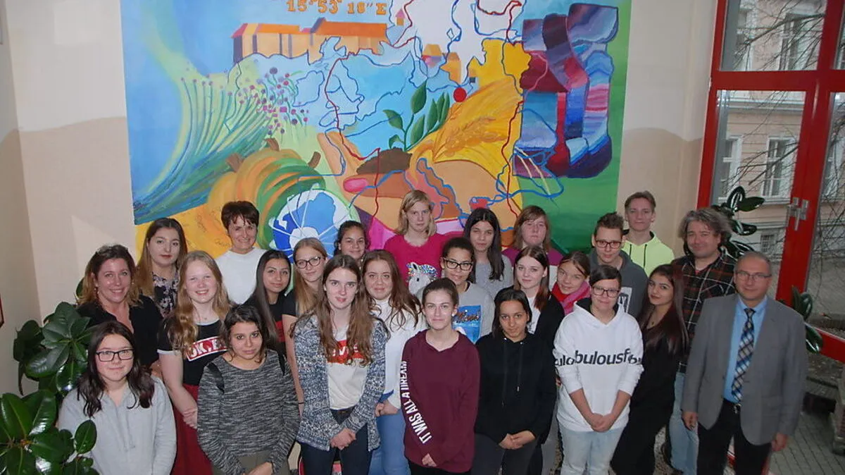 Schülerinnen und Schüler der Polytechnischen Schule Feldbach wandelten auf künstlerischen Pfaden und gestalteten unter professioneller Anleitung ein großes Wandbild.
