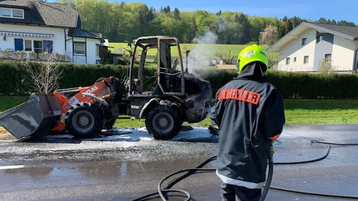 Dienstag um 10 Uhr wurden die Feuerwehren Axbach und Paldau zu einem Löscheinsatz gerufen: In Puch (Gemeinde Paldau) stand ein Mini-Radlader in Flammen. Der Fahrer, ein Südoststeirer, blieb unverletzt.