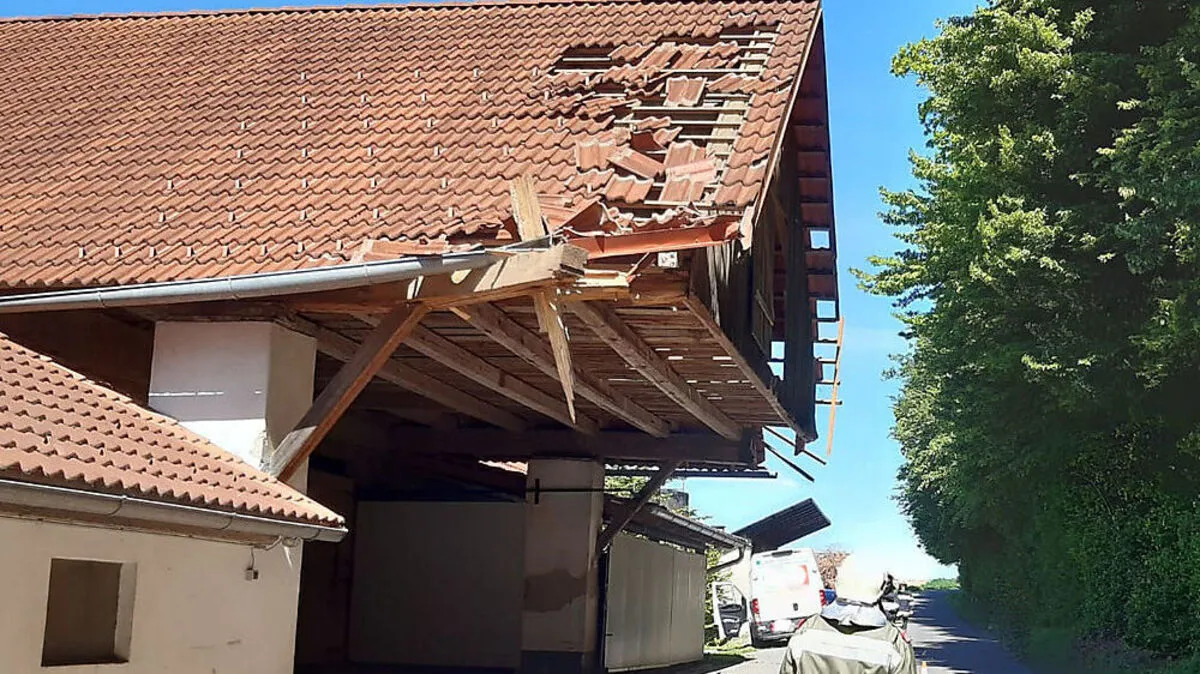 Lkw beschädigte Dachvorsprung schwer