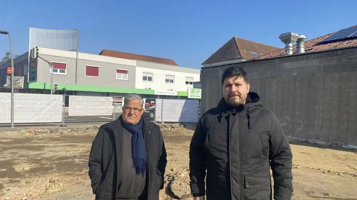 Bereits vor einigen Wochen wurde die "alte Pizzeria" abgerissen. Muharem Gül (links) und Sohn Hasan Gül (rechts) freuen sich auf den Baustart für die neuen Geschäftsräumlichkeiten