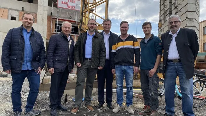 Gleichenfeier für das Bauprojekt von Zahnarzt Stefan Pristautz in Feldbach. Bald werden in der Ungarstraße wohnen, arbeiten und dinieren unter einem Dach stattfinden. Die Gastro übernimmt Marcel Komaricki vom Bade-Restaurant Feldbach.