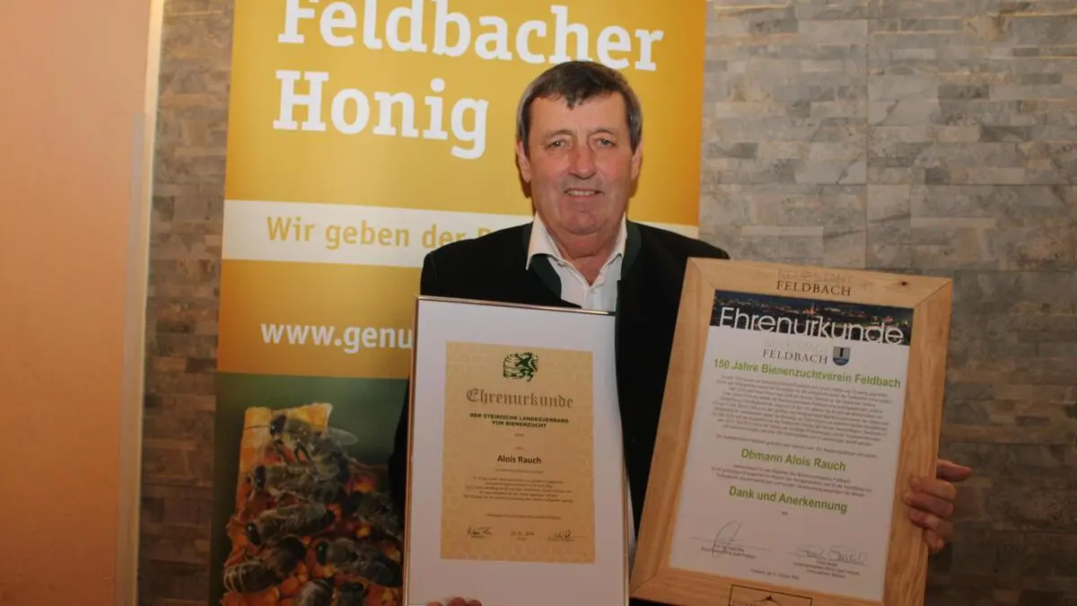 Obmann Alois Rauch mit den Auszeichnungen für den Verein und für ihn als langjährigen Obmann