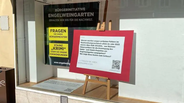 Eine ungewöhnliche Schaufensterdekoration sorgt am Hauptplatz von Stainz für Aufsehen. Statt einer Ware werden hinter der Glasscheibe des Lehner-Hauses Fragen in die Auslage gestellt. Jede Woche wird eine andere kritische Frage präsentiert. Der Adressat ist immer derselbe: Bürgermeister Karl Bohnstingl (ÖVP).