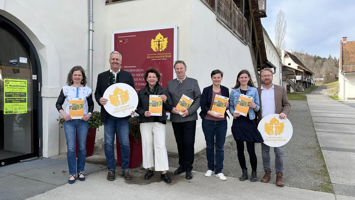 Der Naturpark Südsteiermark rund um Obmann Reinhold Höflechner (2. v. l.) sowie Landesrätin Ursula Lackner (3. v. l.) präsentierten die Ergebnisse des Beteiligungsprozesses