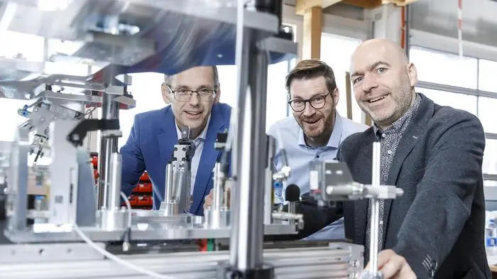 Beim Wandel des Geschäftsmodells bekamen Autforce-Geschäftsführer Oliver Hohnhold und Christian Hanbauer (v.r.) Unterstützung von der Steiermärkischen Sparkasse unter Vorstandsmitglied Oliver Kröpfl (l.)