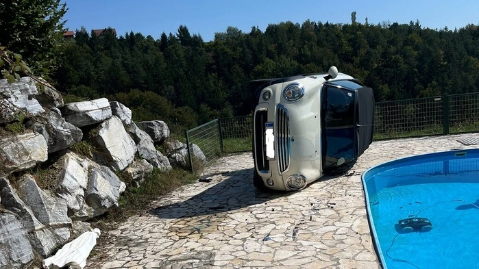 Pkw rollte über Hang und landete beinahe im Pool des Nachbarn