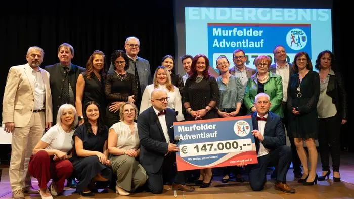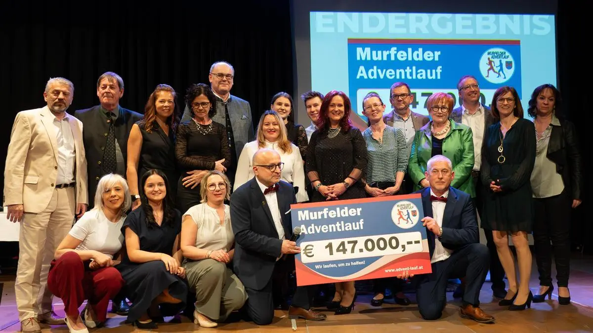 Erst im Dezember hatte der Murfelder Adventlauf sein 20-jähriges Bestehen gefeiert. Nun präsentierte Obmann Hannes Klapsch bei der feierlichen Spendenübergabe im Heinz Neubauer Kultursaal in Straß vor zahlreichen Gästen das Spendenergebnis – eine Rekordsumme von 147.000 Euro.