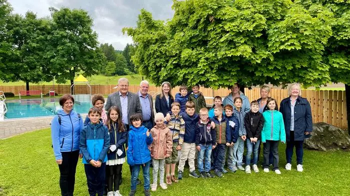 Die Vertreter der Gemeinde mit den Schülern der Volksschule in Wernersdorf