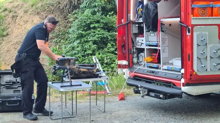 Zur Unterstützung war auch ein Drohnenteam der Feuerwehr vor Ort. Da der Abgängige kurz vor dem Abheben des Geräts bereits von einem Suchtrupp in einem steilen Waldstück gefunden worden war, war ein Einsatz der Drohne nicht mehr notwendig. Laut Informationen der Feuerwehr dürfte sich der Mann in einem verwirrten Zustand befunden haben, nach einer ärztlichen Untersuchung wurde er ohne Verletzungen zurück an seinen Wohnort gebracht. Gegen 20.30 Uhr konnte die Feuerwehr den Einsatz erfolgreich beenden.