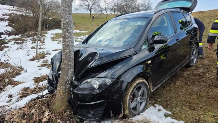 Auf der B 69 in St. Oswald ob Eibiswald kam ein Pkw von der Fahrbahn ab und krachte gegen einen Baum. Der verletzte Lenker wurde mit dem Hubschrauber abtransportiert.