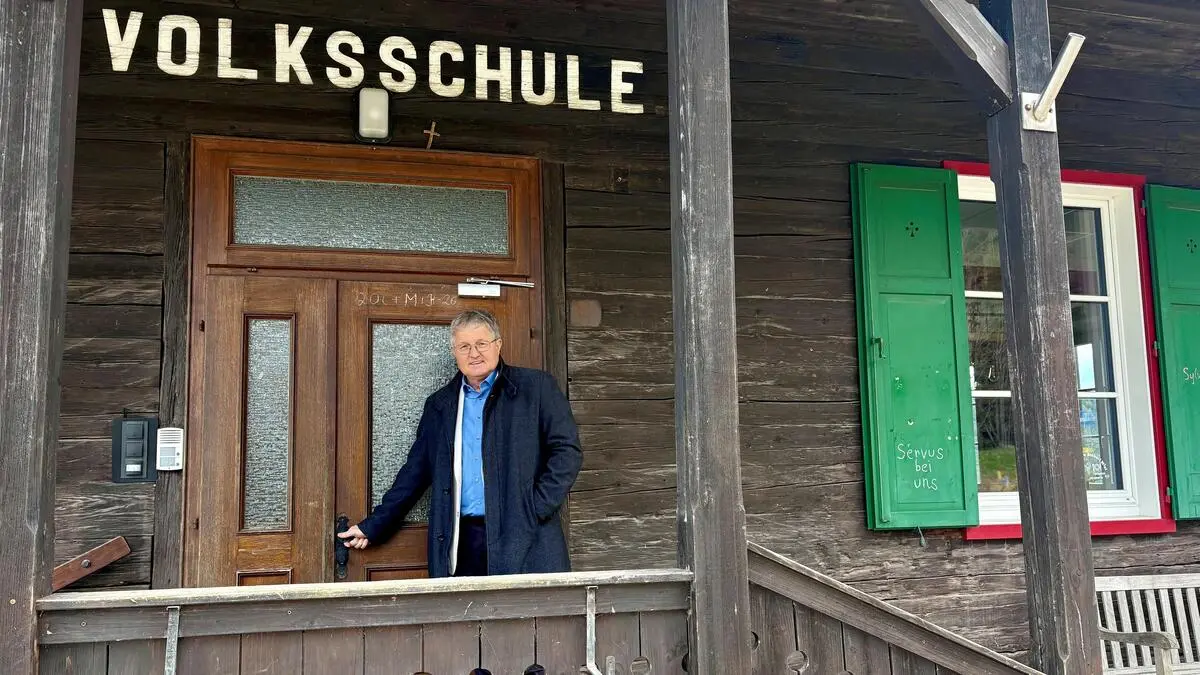 Bürgermeister Josef Waltl vor dem Lokal, der ehemaligen Volksschule