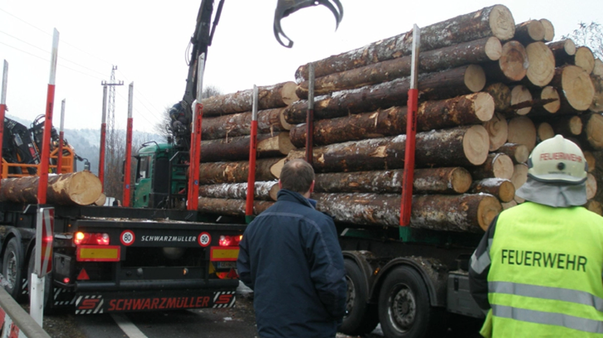 Auf der A 9 bei der Autobahnabfahrt Lebring touchierte am Montag ein Lastwagenzug die Betonleitplanken, überfuhr sie teilweise und blieb stecken.