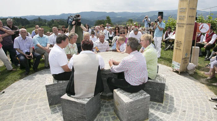 Der frei zugängliche Grenztisch ist Sonntag mit Hunderten Gästen aus der Steiermark und Slowenien eröffnet worden. Auch prominente Gäste mischten sich bei der Eröffnung unter das Volk.
