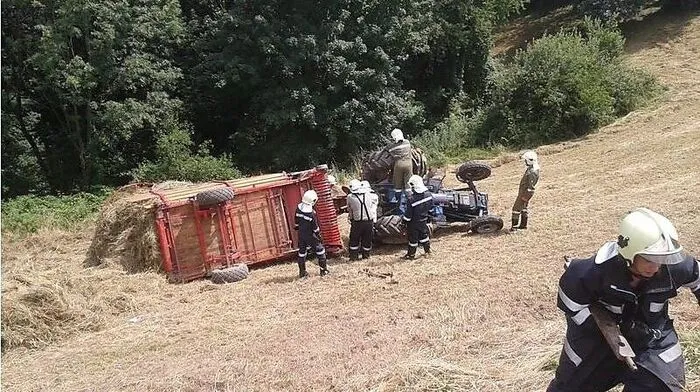 14 Mann der Feuerwehr rückten zur Bergung eines umgestürzten Traktorgespanns aus. Der Lenker war unverletzt geblieben.