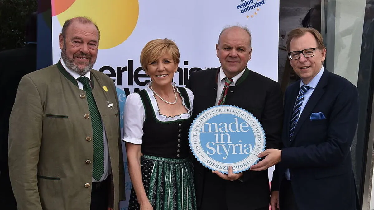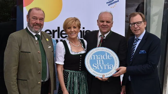 Eröffneten die Erlebniswelt: Bürgermeister Walter Eichmann, Rosina und Alois Mochart, Landesrat Christian Buchmann