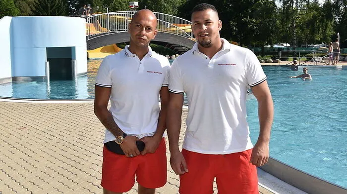 Resa Andami und Fathy Shebl sind als 'friendly beach guards' im Städtischen Bad Leibnitz im Einsatz