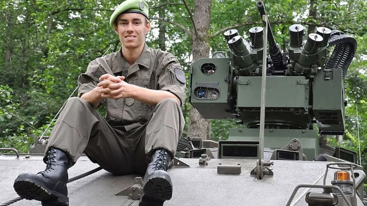 Stefan Kraft auf dem Pandur-Radpanzer