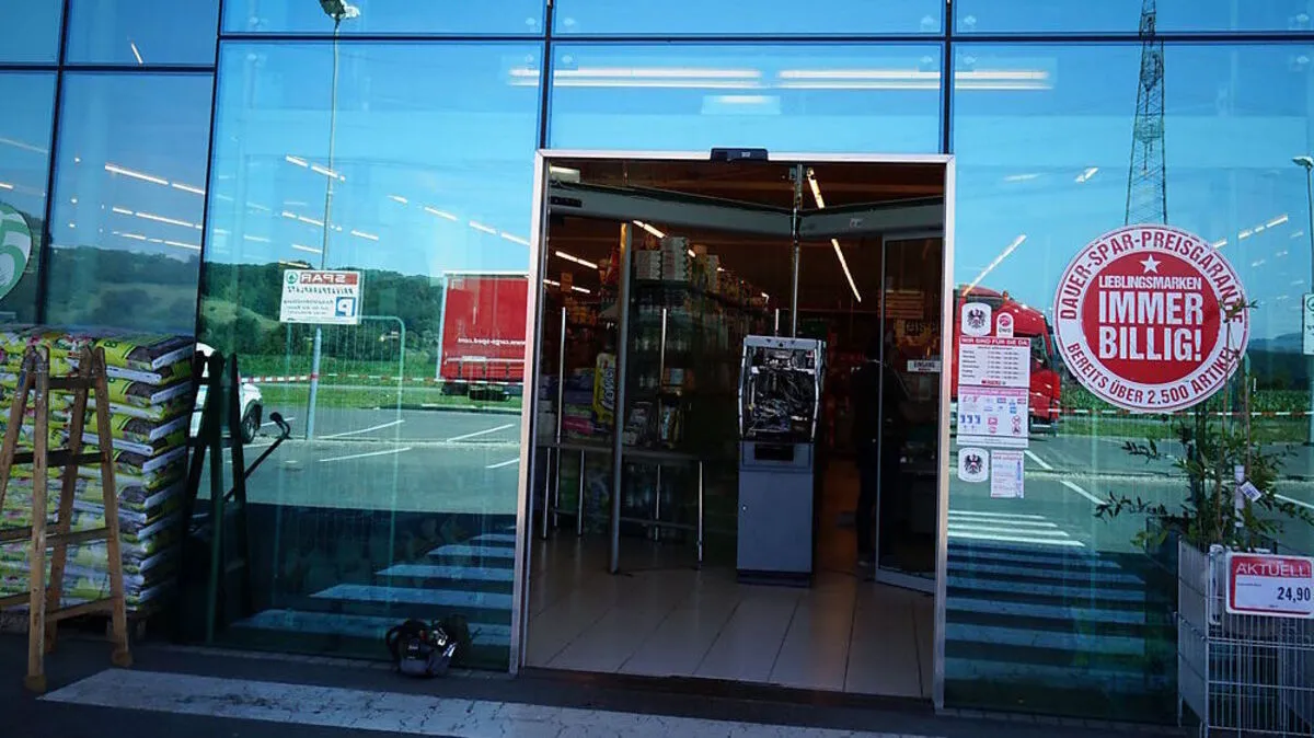 Im Foyer einer Supermarkt-Filiale in Lang versuchten Unbekannte in der Nacht auf Mittwoch, einen Geldausgabeautomaten zu sprengen. Die Täter entkamen unerkannt.