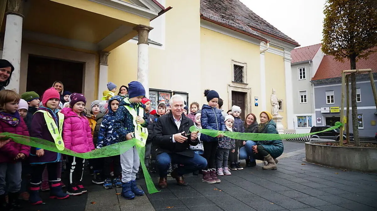 Zwei Säulenhainbuchen schmücken ab sofort den Platz vor der Klosterkirche. Kinder der Kindergärten Sumsi und Piccolo veranstalteten am Dienstag eine kleine Feier anlässlich deren Pflanzung.