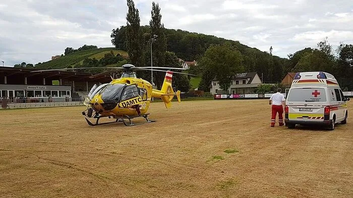 Acht bis zehn Meter tief stürzte am Montagvormittag ein 38-Jähriger von einer Leiter in Gamlitz. Rotes Kreuz, Polizei und Rettungshubschrauber waren im Einsatz.