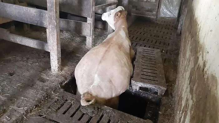 Auf einem Bauernhof sind am Montagmorgen eine Kuh und ihr Kalb in eine Grube gefallen. 15 Feuerwehrleute waren zur Befreiung ausgerückt.