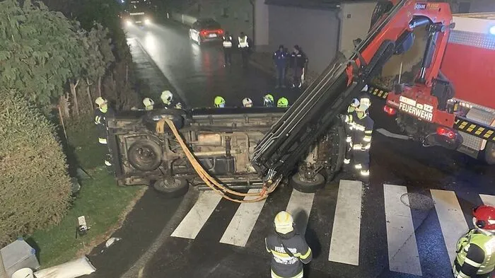 Pkw kam auf Gemeindestraße ins Schleudern und landete am Dach