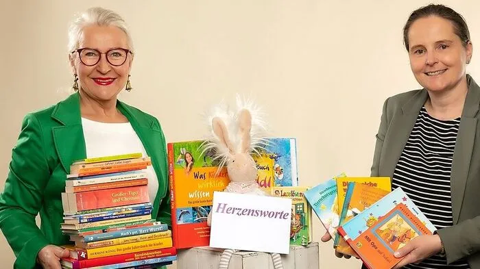 Herzensworte-Feierrednerin Gabriele Koch spendet Kinderbücher an Kinderhilfe-Haus Graz.