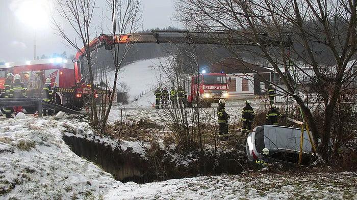 Pkw kam von Fahrbahn ab und stürzte in Bach