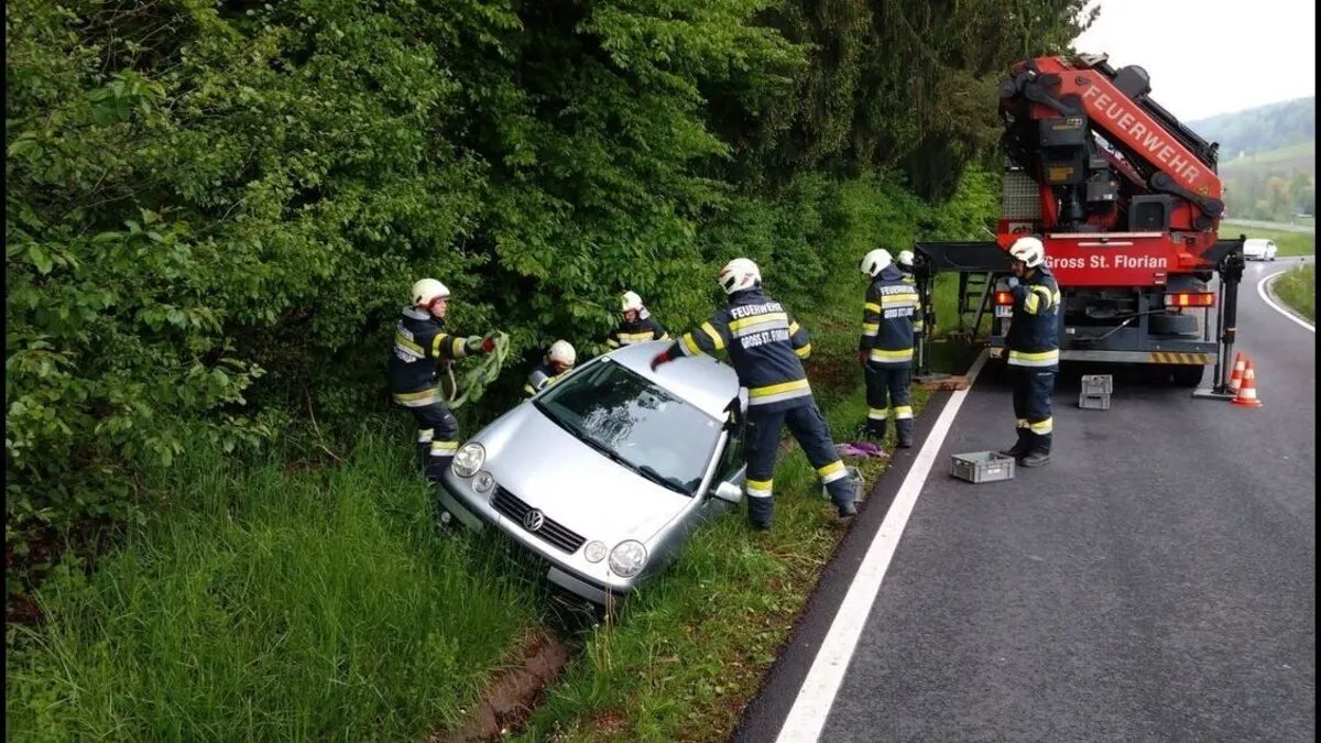 25 Feuerwehrkräfte bargen Fahrzeug aus Straßengraben