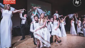 Deutschlandsberg Schilcherlandgala An die 700 Gäste tanzten in der Koralmhalle zu den Klängen der Gruppe Austromex feat. Livia Hubmann und Marco Schelch. Gefeiert wurde bis weit nach der Mitternachtseinlage, die unter der Leitung von Angelika Gollinger und Ulli Zimmermann einer der Höhepunkte des Abends war. Deutschlandsberg