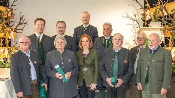 Landesjägermeister Franz Mayr-Melnhof-Saurau gab anschließend einen Ausblick auf die künftigen Schwerpunkte. Im Visier hat man neben dem Wildtiermanagement etwa die verstärkten Maßnahmen zur jagdlichen Sicherheit, sowohl in der Praxis als auch in der Kommunikation mit der nichtjagenden Bevölkerung. Wie wichtig die Jagd für Land und Gesellschaft ist, betonte Landesrätin Simone Schmiedtbauer in ihrer Rede. Für ihr Engagement wurden im Rahmen des Bezirksjägertages die Jäger Anneliese Fürnschuss, Paul Stelzl, August Plank, Johann Gutschy, Josef Jauk und Valentin Zmugg mit dem Bronzenen Verdienstabzeichen der Steirischen Landesjägerschaft geehrt. Florian Tanzbett und Hund Bailey wurden zudem in die Nachsuchestation des Bezirks aufgenommen.