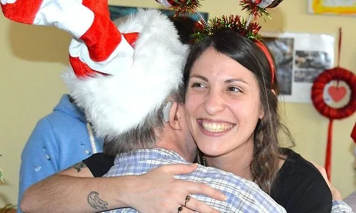 Zwei von ihnen kennen das Haus schon von einem Projekt im Sommer – da wurde im Garten ein Hochbeet gebaut. Eine ist Bianca, die nun neben Arnold steht, der hier am Rosenhain wohnt. „Warte, ich setz dir fürs Foto noch die Weihnachtsmütze auf“, lacht sie. Alle haben lustige Mützen und Rentiergeweihe am Kopf und der Tee mit Orangenstücken duftet – es herrscht einfach Weihnachtsstimmung.