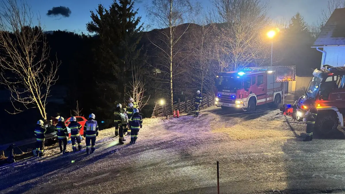 Um 6.18 Uhr wurden die Freiwilligen Feuerwehren (FF) Passail und Plenzengreith zu einem Verkehrsunfall gerufen. Auf dem Breitenauwegin Plenzengreith (Gemeinde Passail) war eine Pkw-Lenkerin in Richtung B 64 unterwegs, als sie in einer Kurve die Kontrolle über ihr Elektrofahrzeug verlor und von der Straße abkam.